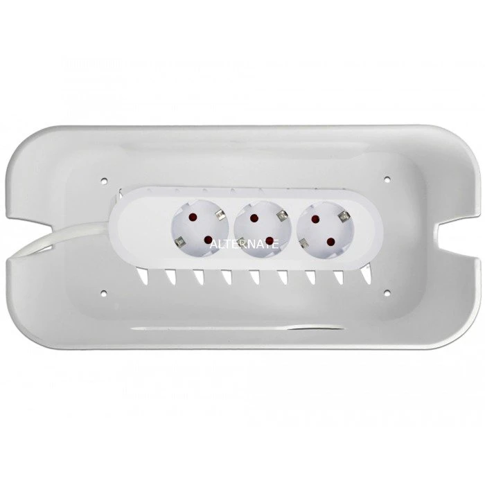 Die Kabelmanagement Box 18290 von Delock dient zum Verstauen und Ordnen verschiedener Kabel und Netzteile für Handys oder Tablets. Sie schützt zudem Kinder und Haustiere vor möglichen Gefahren aufgrund freiliegender Stromquellen. Im Inneren der Box kann eine Steckdosenleiste platziert werden, zum Anschluss verschiedener Netzteile. Mit Hilfe der 4 Öffnungen am Deckel können die einzelnen Kabel nach Außen geführt und direkt mit einem Mobilgerät verbunden werden. Gleichzeitig dient der Rand des Deckels als Ständer für das angeschlossene Gerät. Die große Öffnung an der Vorderseite kann z. B. zum Durchführen dickerer Kabel verwendet werden. Das am Deckel befindliche Aufbewahrungsfach ermöglicht das Verstauen von weiterem Zubehör. Mit ihrem schlichten Design fügt sich die Box in jede Räumlichkeit ein, und sorgt für Ordnung und Schutz der freiliegenden Kabel.