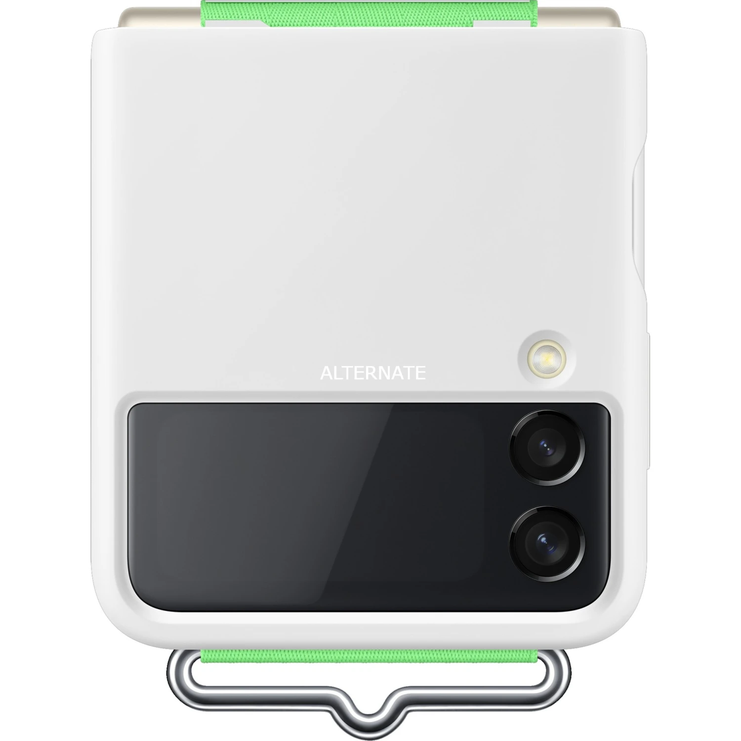 SAMSUNG Silicone Cover Mit Strap für Galaxy Z Flip3 5G – Weiß/Grün | Handyhülle mit Halterung